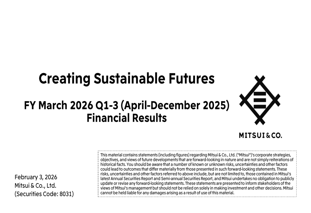 Mitsui & Co., Ltd. operates as trading company in Japan, Singapore, the United States, Australia, and internationally. It operates through Mineral & Metal Resources, Energy, Machinery & Infrastructure, Chemicals, Iron & Steel Products, Lifestyle, Innovation & Corporate Development, and All Other segments. The company engages in the manufacture and sale of steel products; steel processing, maintenance, and recycling; exploration, development, and production of oil and natural gas; trading and marketing of oil, petroleum products, coal, and uranium; investment, development, and trading in mineral and metal resources; resource recycling and industrial development; and investment in plants, offshore energy development, ships, aviation, space, railways, and automotives, as well as machinery for mining, construction, and industrial use. It also offers power, gas, water, rail, and logistics systems; and sales, financing, lease, and transportation services. In addition, the company provides basic chemicals and inorganic raw materials, functional materials, electronic materials, specialty chemicals, housing and lifestyle materials, agri-inputs, animal and human nutrition, and health products; logistics infrastructures services, including tank terminal operation; plastic recycling; hydrogen and ammonia fuels; decarbonization of methanol; and forest resources and biomaterials businesses. Further, it engages in the production of food products; sale of fashion and textiles; and provision of wellness, medical, pharma, and employee experience services. Additionally, it is involved in ICT and cybersecurity services; satellite broadcasting channel; insurance risk management; securities and investment advisory; real estate development, leasing, and brokerage; private equity investment; warehousing; HR and GA; and accounting and treasury-related services. Mitsui & Co., Ltd. was incorporated in 1947 and is headquartered in Chiyoda, Japan.